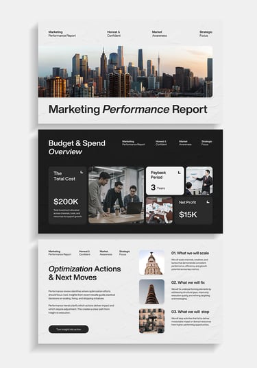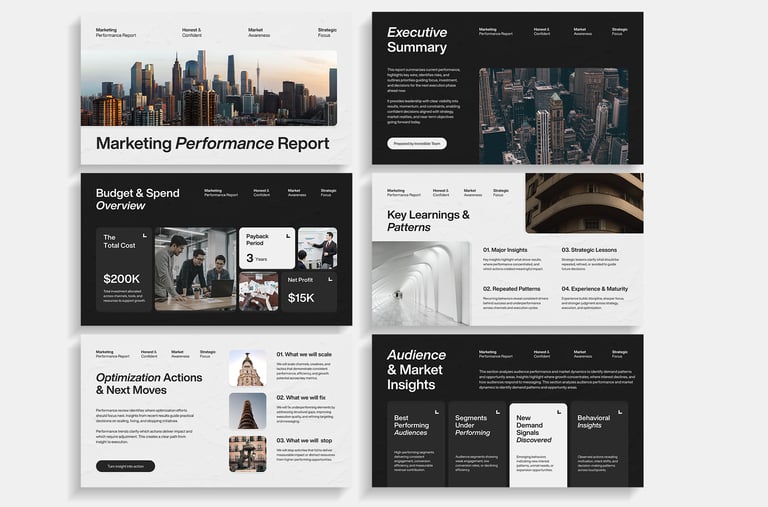Pitch Deck design organizes strategy, data, and narrative into clear presentation systems. It structures information with strong hierarchy and visual clarity for focused communication.